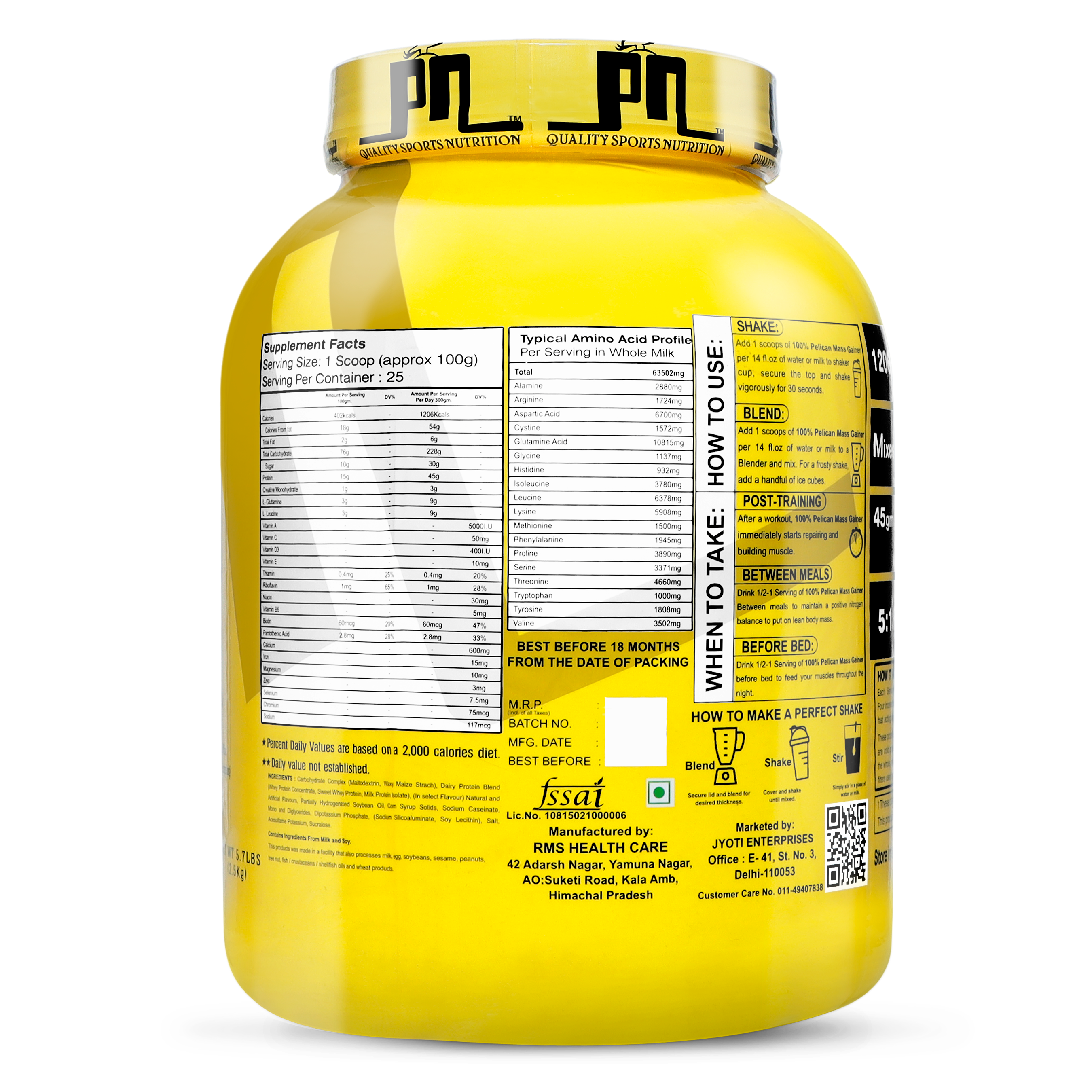 Pelican Nutrition – 100% Pelican Mass Gainer (5.7Lbs) (2.5kg) | 15g Protein | High Calorie Formula | Advanced Carb-Protein BlendPelican Nutrition – 100% Pelican Mass Gainer (5.7Lbs) (2.5kg) | 15g Protein | High Calorie Formula | Advanced Carb-Protein Blend