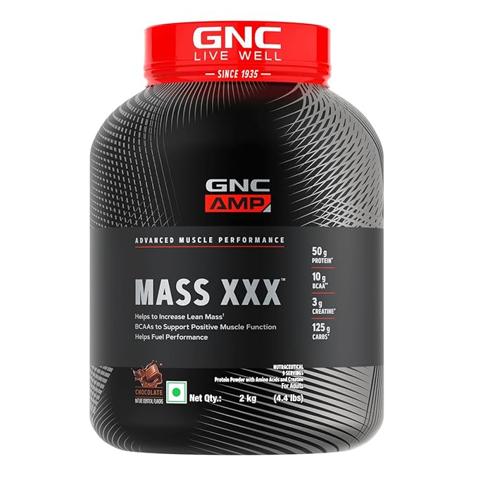 GNC AMP Mass XXX Advanced Muscle Gainer (2kg) | 50g Protein | 125g Carbs | 3g Creatine | Chocolate Flavour