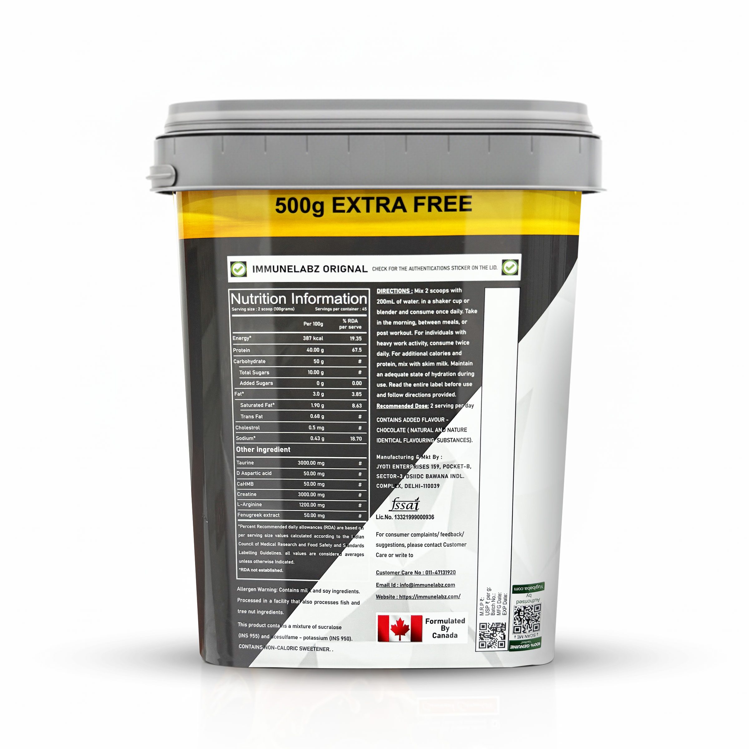 ImmuneLabz GH Anabolic Muscle Gainer (4kg + 500g Extra Free) | 40g Protein | With Creatine, Taurine & L-Arginine | Caramel ChocolateImmuneLabz GH Anabolic Muscle Gainer (4kg + 500g Extra Free) | 40g Protein | With Creatine, Taurine & L-Arginine | Caramel Chocolate