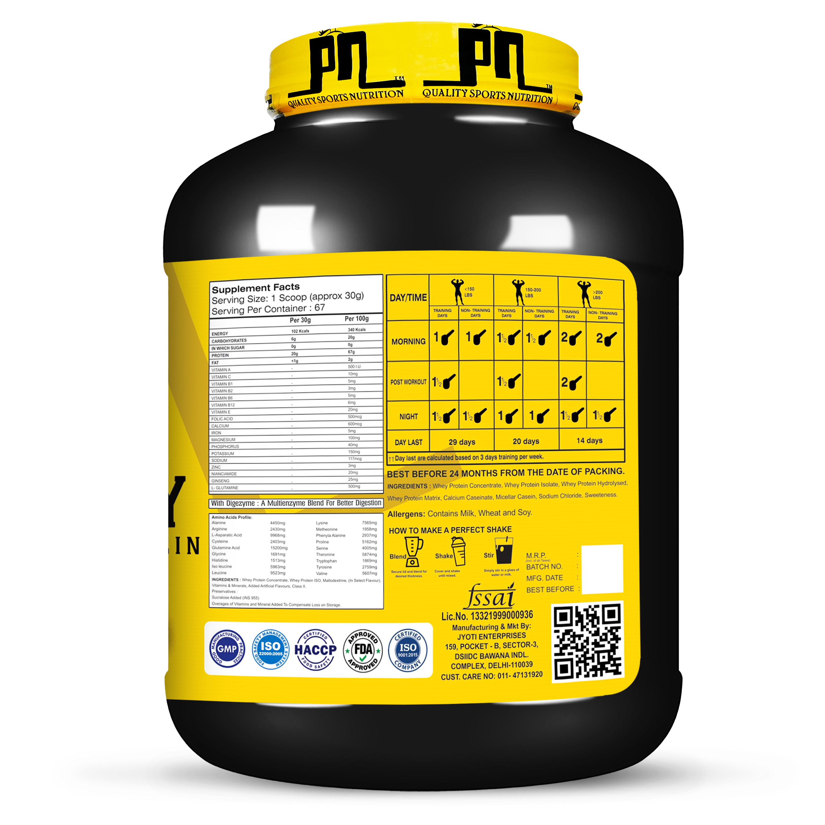 1 Scoop (30g) + 180–240 ml cold water or milk Shake well for 20 seconds and enjoy!