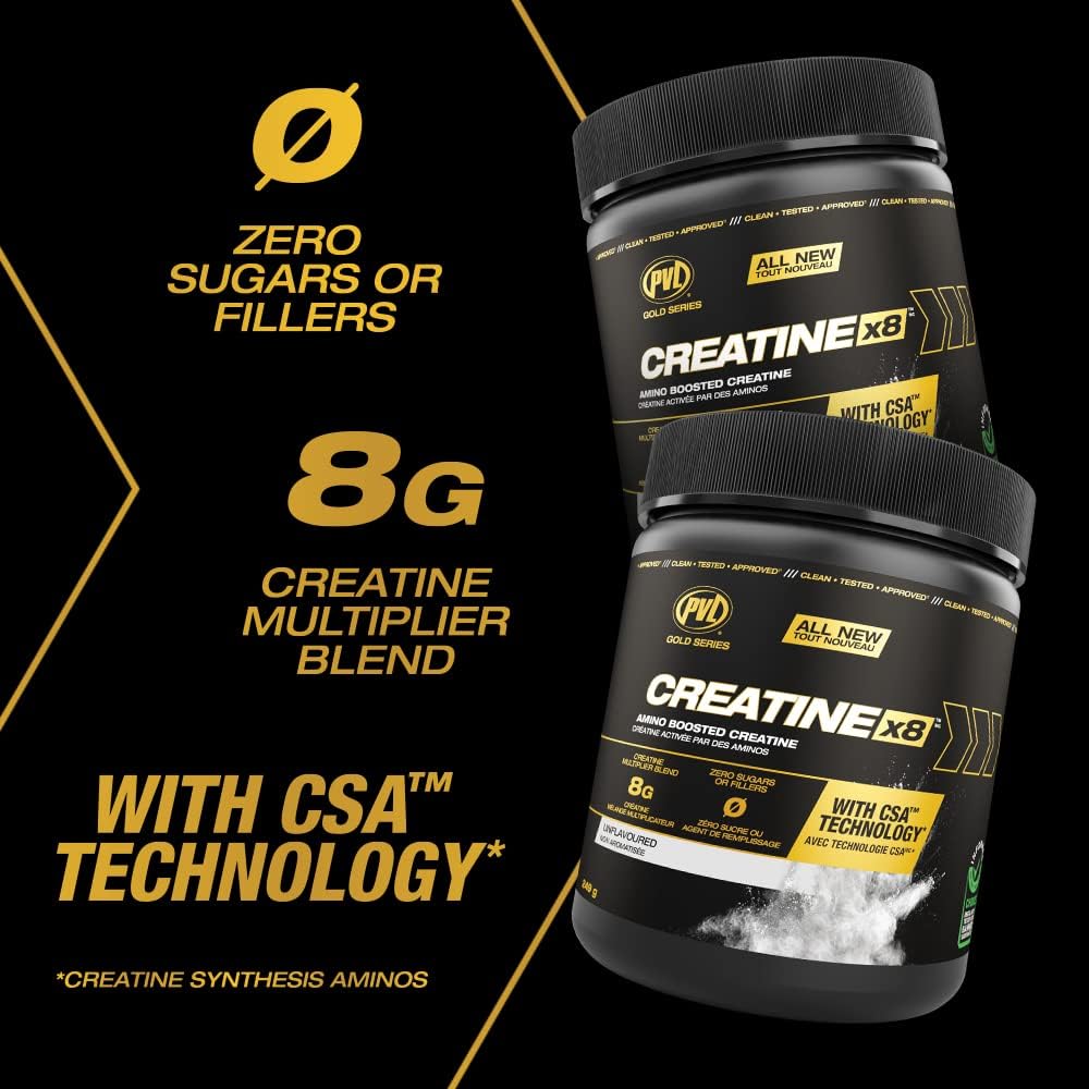 PVL Gold Series Creatine X8 (249g) | 8g Amino Boosted Creatine Blend | CSA Technology | Zero Sugar | Unflavoured