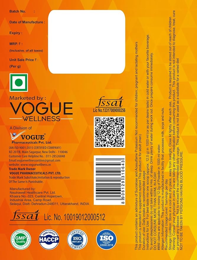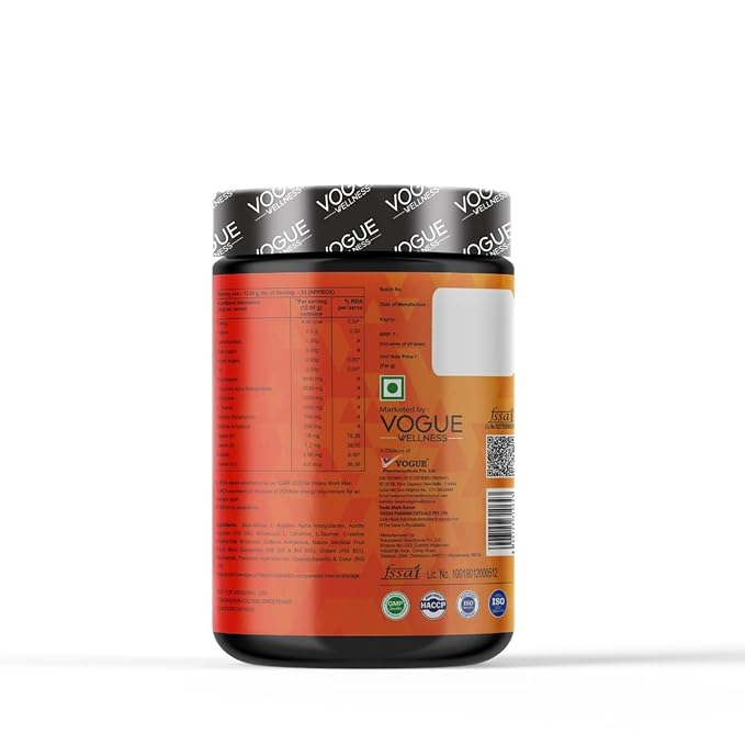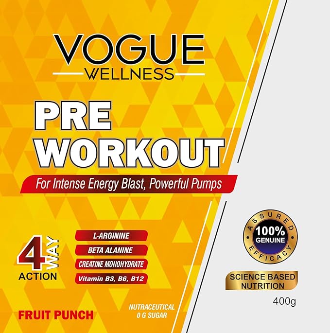 VOGUE Wellness Pre Workout is a high-performance nutraceutical formula specially designed for individuals performing high-intensity workouts. It delivers an instant energy boost, enhanced endurance, and powerful muscle pumps to help you maximize your training sessions.